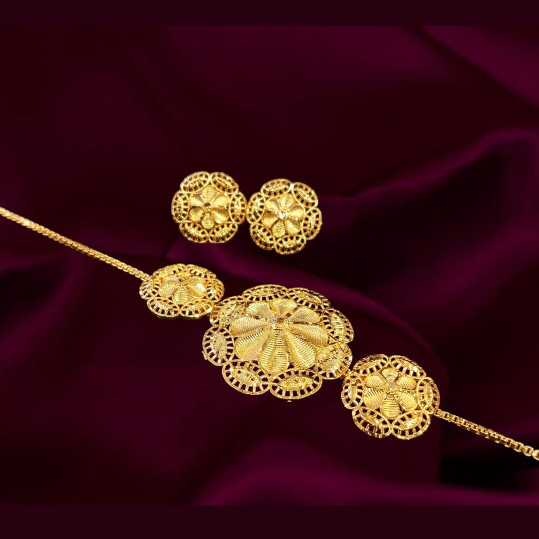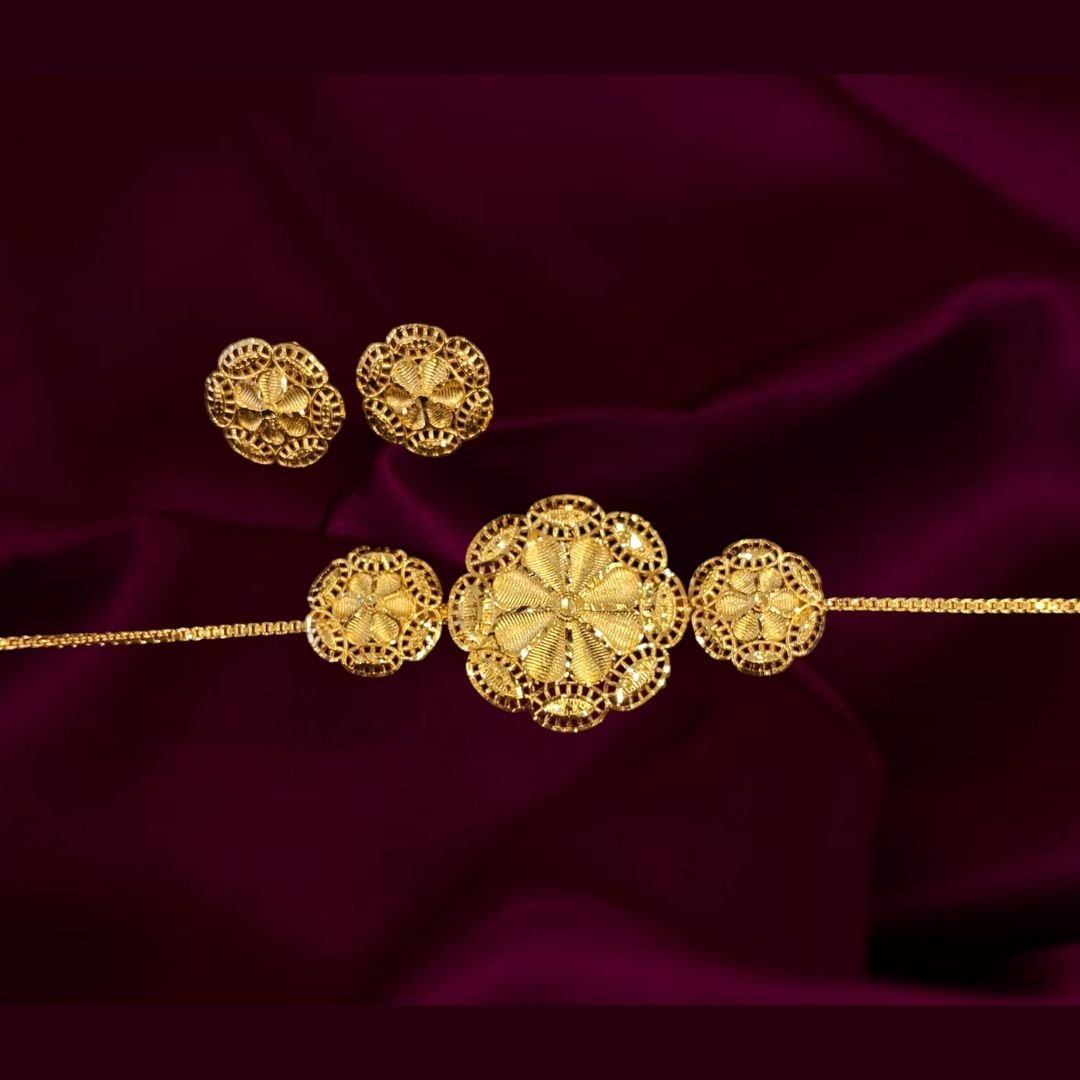 Exclusive diamond frosting work floral motif gold replica chokar with earrings set ( 5% off )