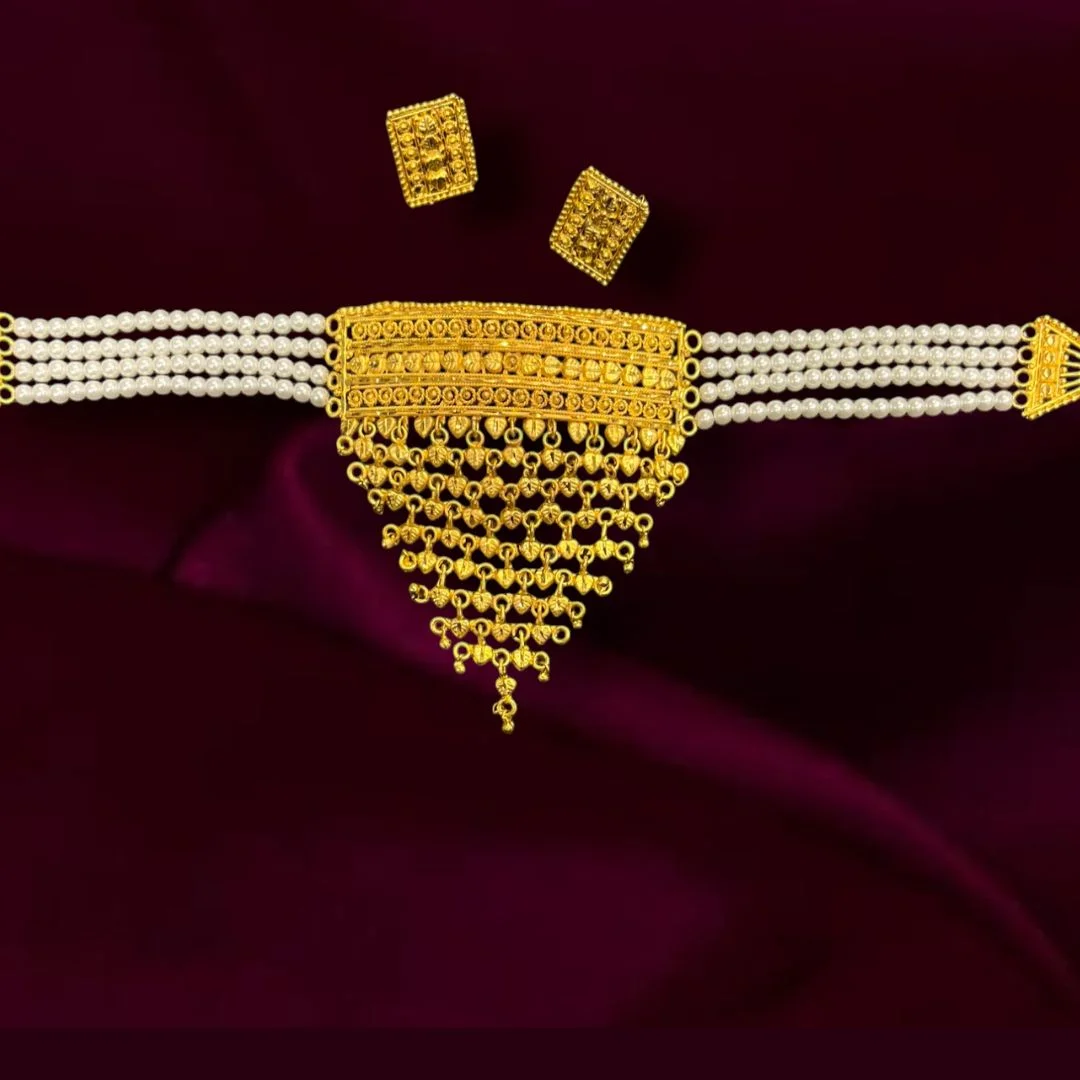 Traditional jhalor motif heavy four line pearl choker with kanpasa Set for Women & Girls ( 5% off )