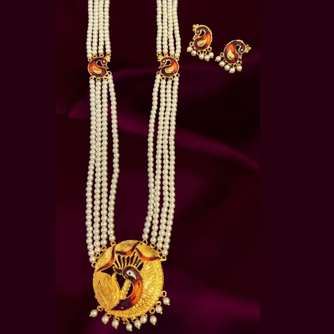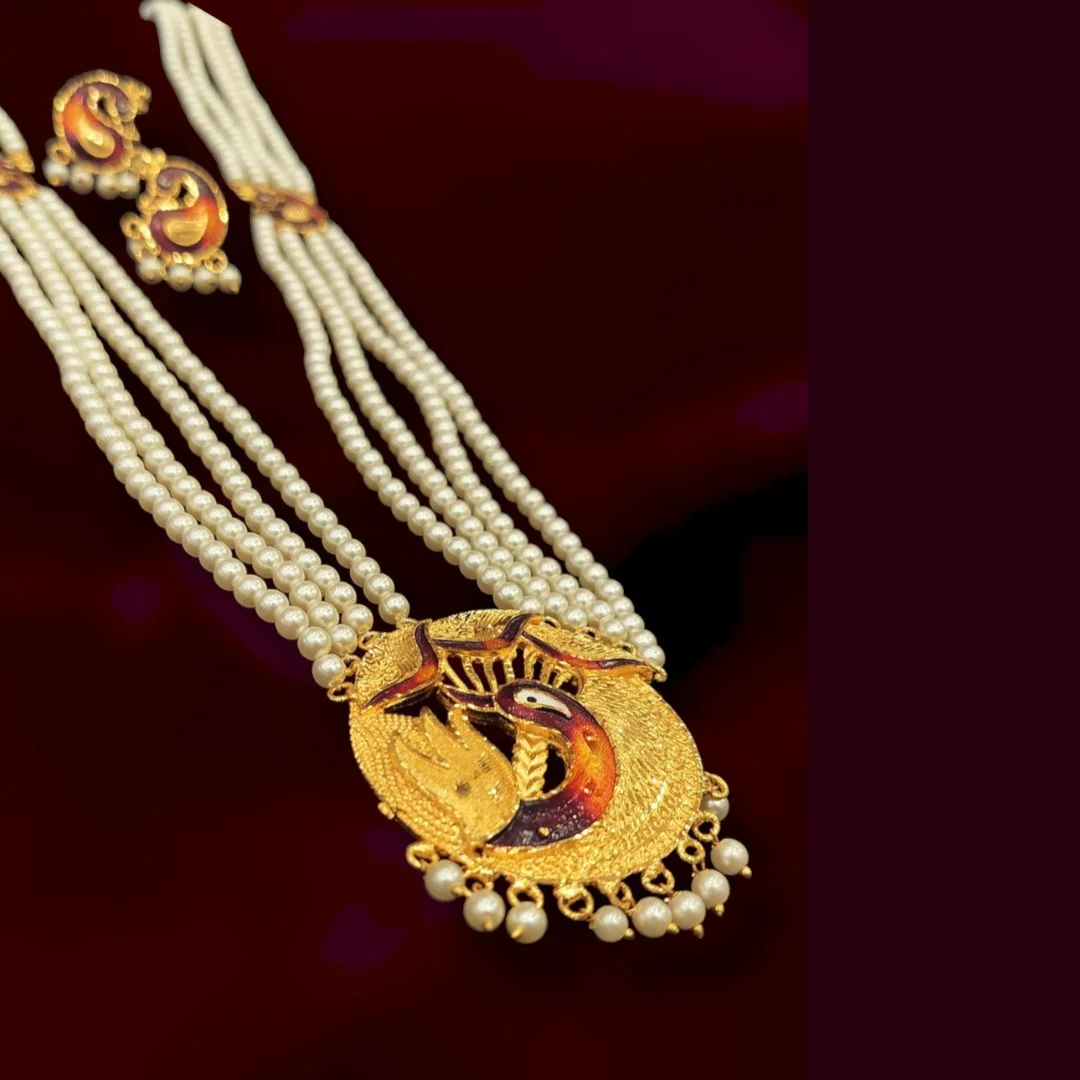 Traditional Peacock motif minakari pearl long Sita har with pearl work peacock ( 5% off )